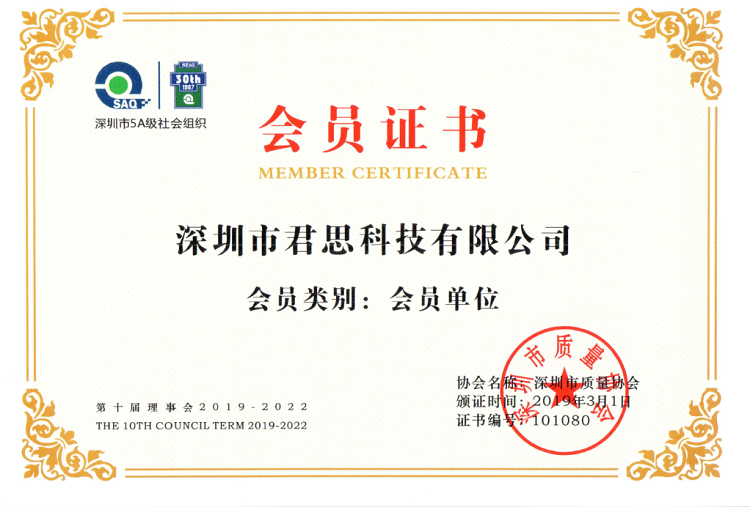 此次君思科技成為深圳市質量協會的會員,意味著君思科技得到了充分的認可。在未來的發展道路上,君思科技將繼續堅持“為員工創造機會,為客戶創造價值”的經營理念,繼續貢獻我們的力量。