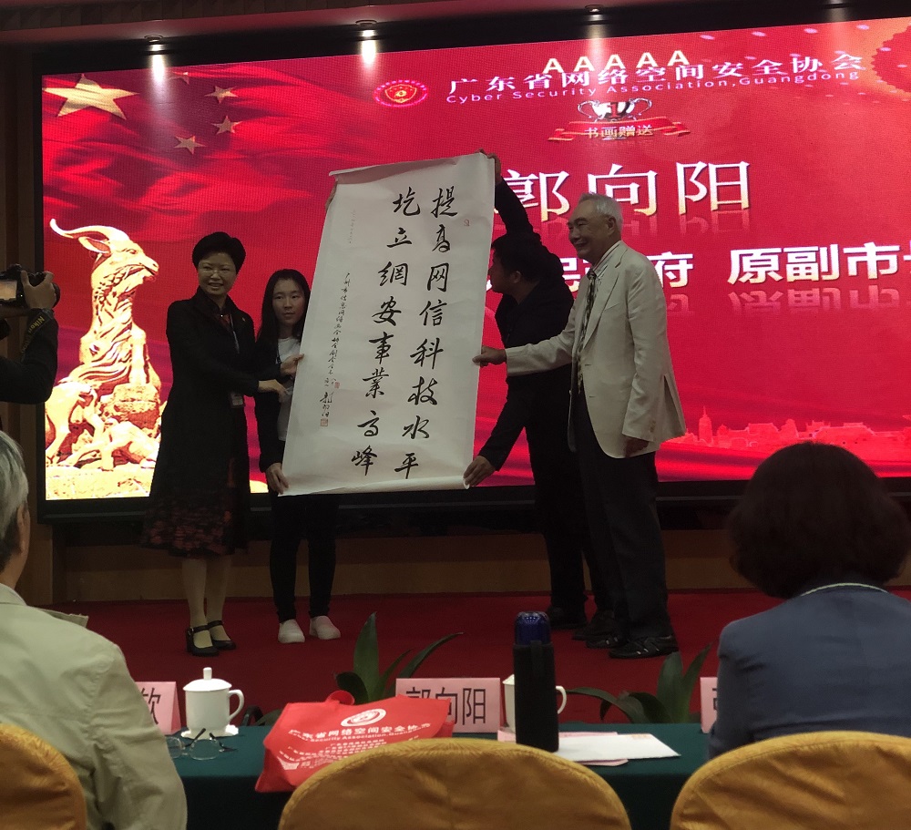 廣州市人民政府原副市長郭向陽參加廣東省空間安全協會第二屆理事會成立書畫贈送儀式。