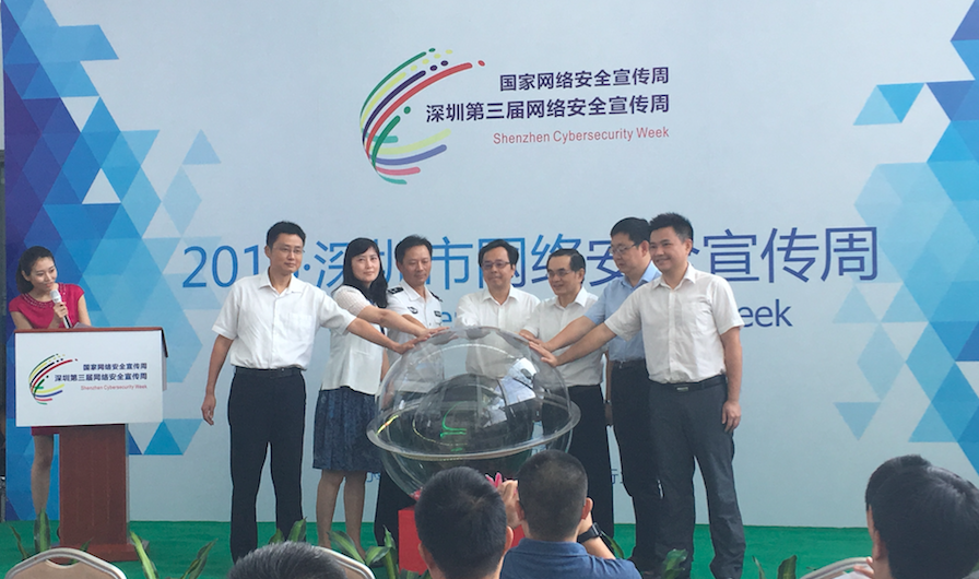 深圳市委常委、宣傳部長李小甘、深圳市網(wǎng)信辦主任鐘海帆、市公安局副局長郭向陽、市經(jīng)信委副主任賈興東、市教育局副局長吳筠、團市委副書記藍濤,以及各網(wǎng)絡(luò)安全企業(yè)專家代表共同啟動了第三屆深圳網(wǎng)絡(luò)安全宣傳周。