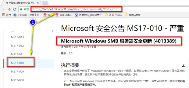 官方更新地址:https://technet.microsoft.com/zh-cn/library/security/MS17-010