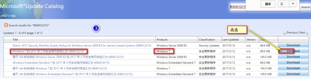 對于Windows XP、2003等微軟早已不再提供安全更新的系統,微軟也特別為此漏洞提供了補丁下載,下載地址:http://www.catalog.update.microsoft.com/Search.aspx?q=KB4012598。