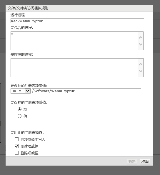 2. 新增自定義規則“Reg-WanaCrypt0r”“file-WanaCrypt0r”